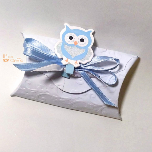 Set bomboniera scatola impressa con gufo e cuore segna posto