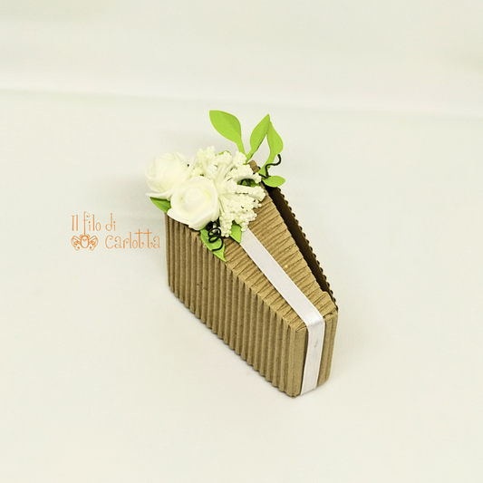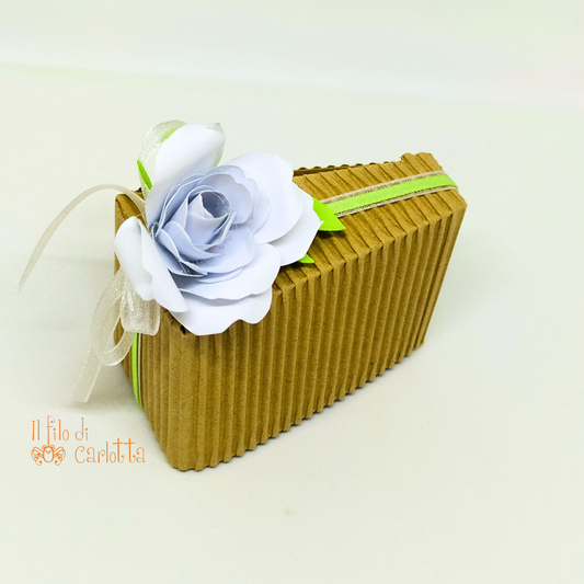 Scatola quadrata in cartoncino ondulato con rosa in panno lenci