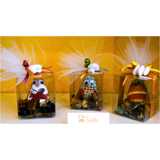Bomboniera gufo pout pourri in scatola di plexiglass
