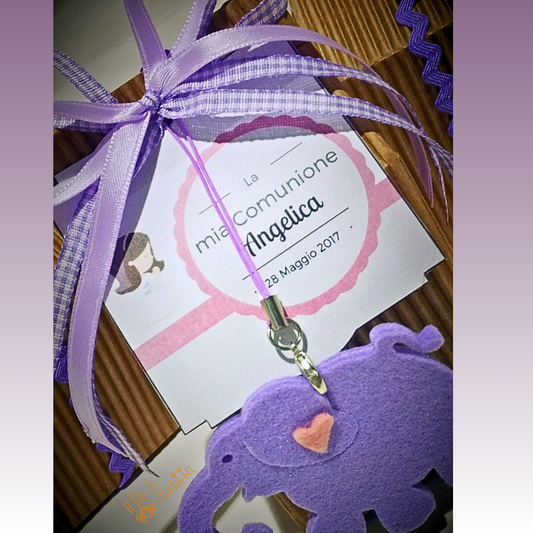 Scatolina del latte in cartoncino ondulato con elefantino lilla portachiavi in feltro
